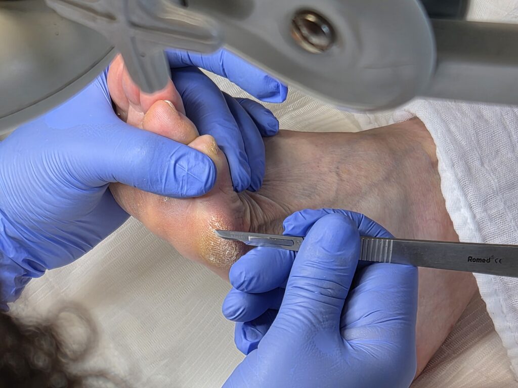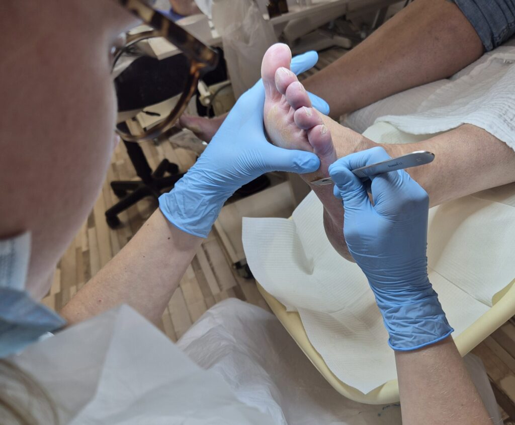 - Behandeling o.a. nagels knippen, eelt verwijderen en een speciale verrichting zoals likdoorns, kloven, ingroeiende nagels of verdikte