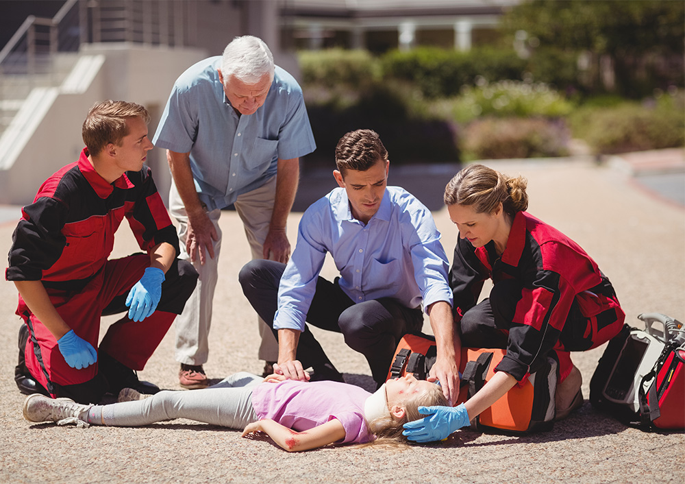 11 juli 2023 1000 × 706 Paramedics examining injured girl on street